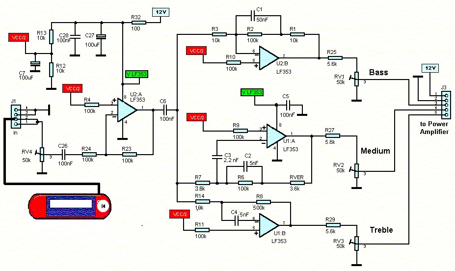 The tone control circuit build based on IC LF353 In stereo mode, we shall have the action of eight loudspeakers which are going to create a very important sound pressure.