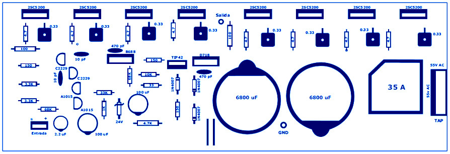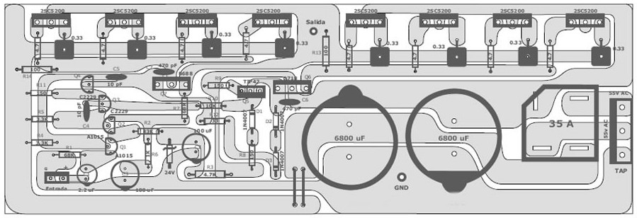 - Transformer for the amplifier should be 55 + 55 volts AC with a current of at least 10 amps.