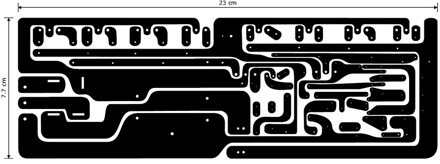 This is the PCB layout for 400w pawer audio amplifier. The power supply is already included in the printed circuit board although in the schematic design, the power supply was not included. Please refer to the connection image in the end of this post.