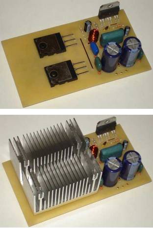 All non-electrolytic capacitors, except for C2, film, 1 uF input capacitance can be replaced 2.2uF. Power of resistors are selected using a 0.25W, although 0.125W is still insufficient. Output transistors of Monoblock Car Amplifier mounted bent and pressed so that their position parallel to the board, to remove heat, a heatsink for transistor 2SC5200 and 2SA1943 and is required. Do not forget to provide insulation and thermal paste between the heatsink and transistors. Inductor L1 frameless, coiled wire diameter of 1 mm in two layers and contains 25 turns, the inner diameter of 5 mm.