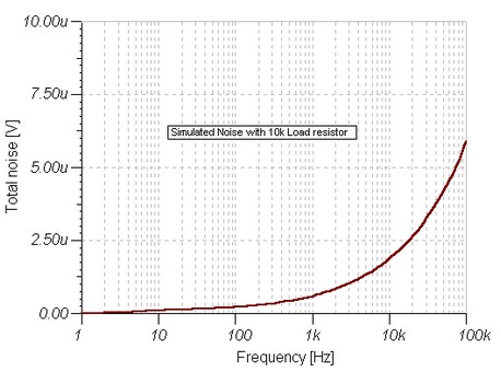 The 1k resistor limits the current to the mic. This resistor should be increased to 2k2 if a supply voltage above 12 Volts DC is used and is not needed if the Mic insert is dynamic. The first stage amplifier built around Q1 is run at a very low collector current. This factor contributes to a very high overall signal to noise ratio and low overall noise output. The emitter resistor of Q1 is decoupled by the 100u realizing a maximum gain for this stage. The noise response of the amplifier measured across the 10k load is shown below. Please note that this plot was made with the mic insert replaced by a signal generator.