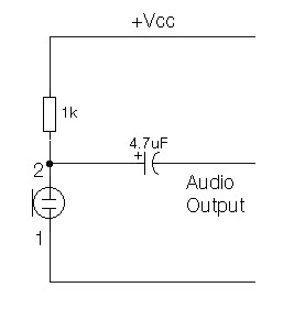 The electret condenser microphone (ECM) contains a very sensitive microphone element and an internal FET preamp, a power supply in the range 2 to 10 volts DC is therefore necessary. Suitable ECM’s may be obtained from Maplin Electronics. Although the schematic is drawn showing a three terminal ECM, two terminal ECM’s may be used, the following page in the practical section shows the changes.